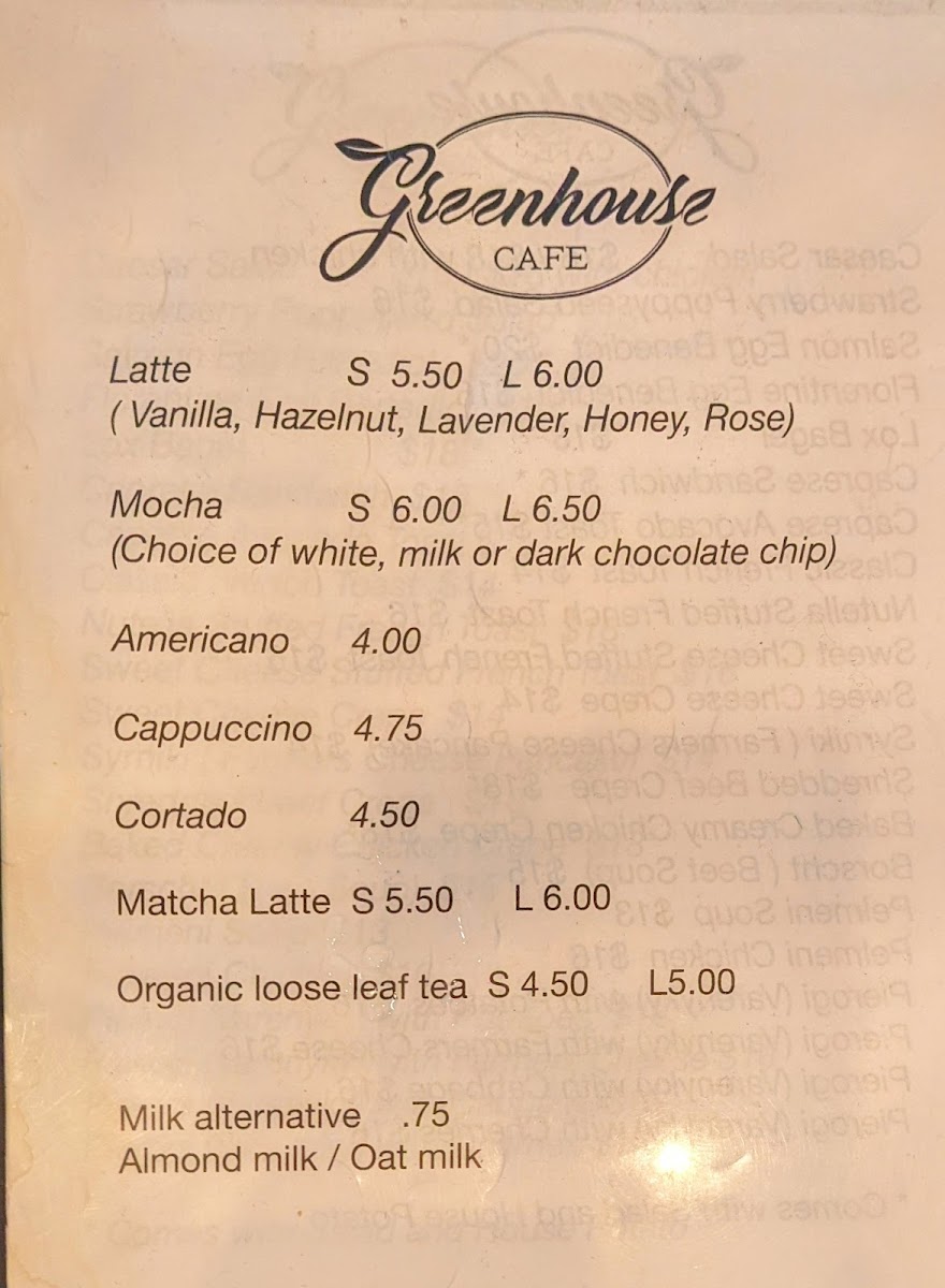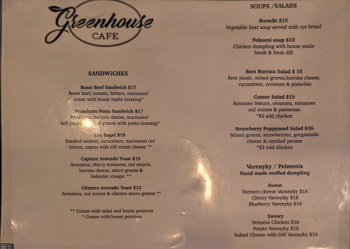 Greenhouse Cafe & Catering Menu