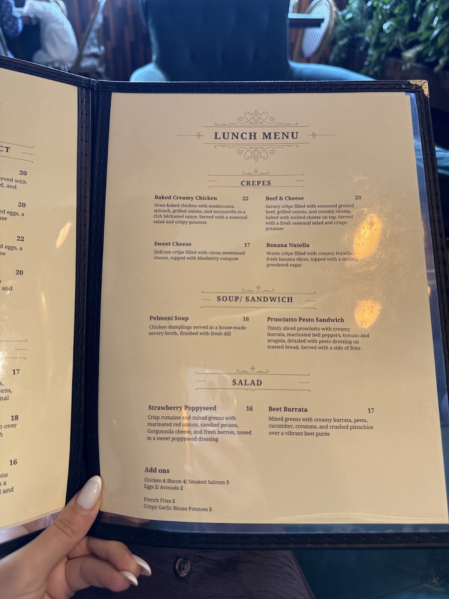 The menu allows visitors to enjoy traditional Slavic dishes alongside classic cafe items, catering to both sit-down meals and quick orders. Many options are suitable for casual dining occasions such as breakfast or brunch, and the availability of drinks to go supports convenient coffee breaks or on-the-move refreshments.